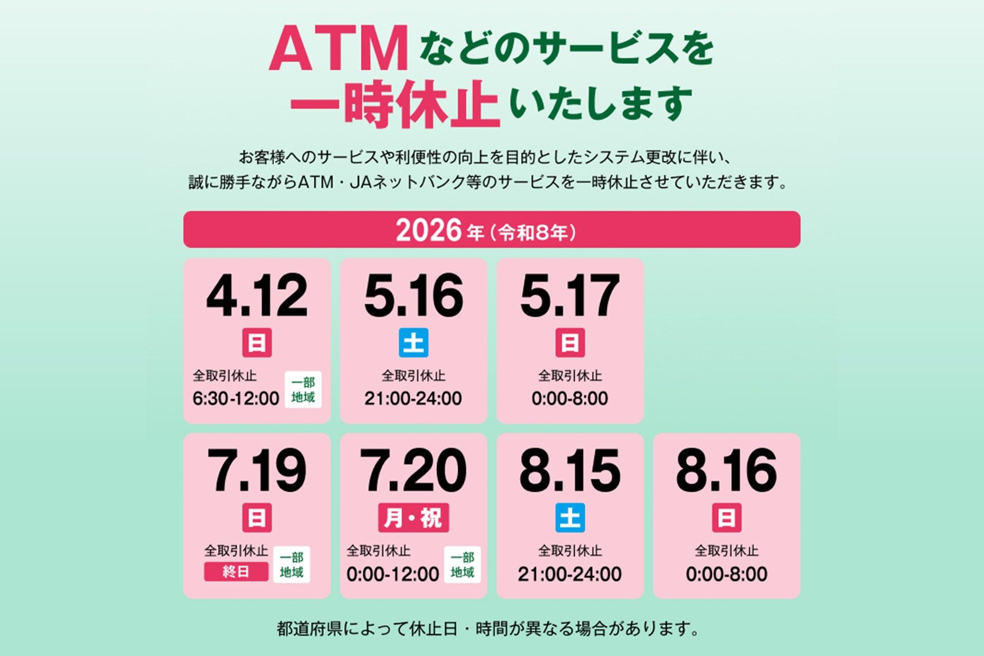 特殊詐欺被害防止に向けたATM利用限度額の変更のお知らせ