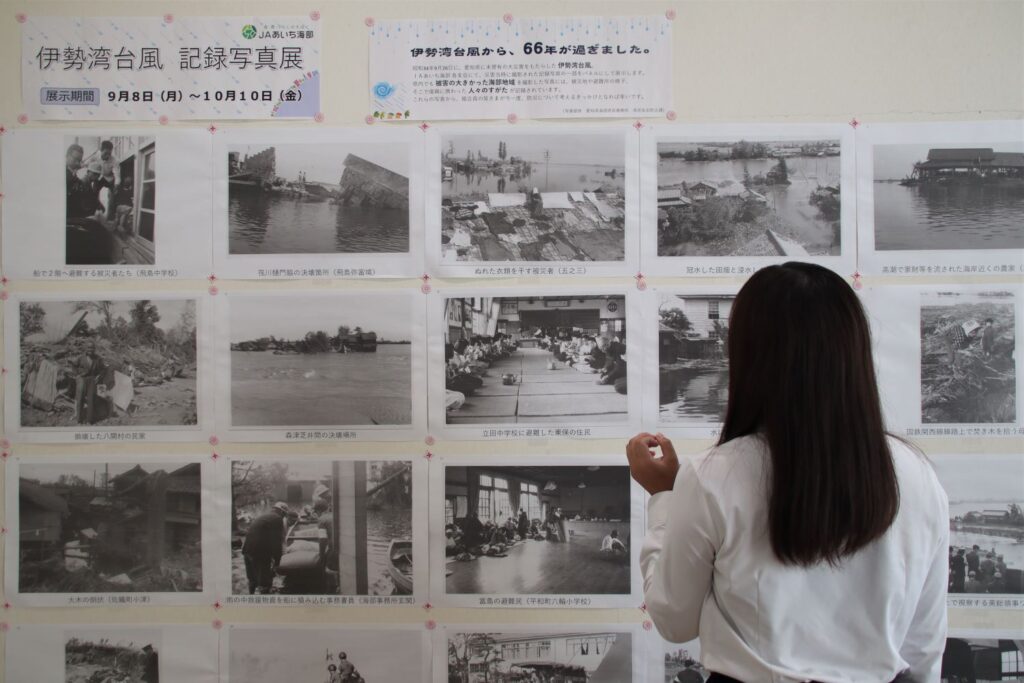 利用者の目に入りやすい窓口近くに展示パネルを設置し、記録写真は愛知県の協力により当JAが預かった中から24枚を展示しました。
