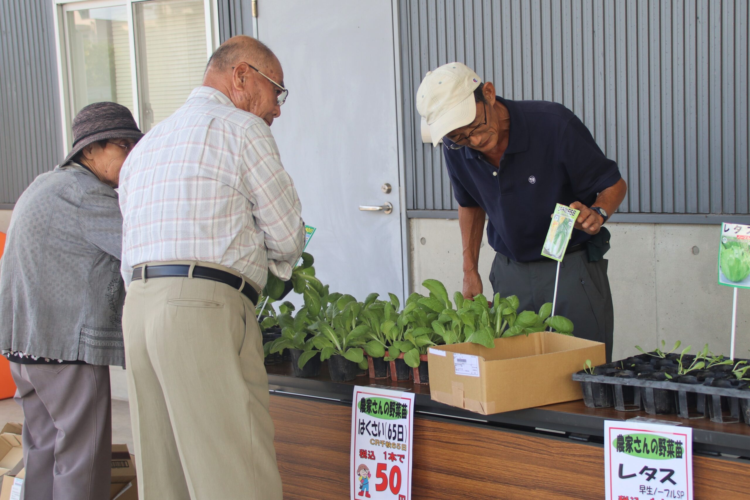 利用者は苗を手にとり1つ1つ確認した後に、満足そうに購入する姿が見られました。期間中は約80名の利用者が訪れ、6種類約1,000本の苗を販売しました。