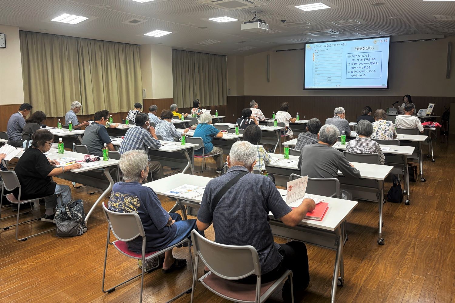 参加者は配布された「わたしのきろく 家族へ贈るエンディングノート」を使用し、「私の歩んできた道」や「私のもしものときに」など、人生を振り返りながらこれからの生き方について心と情報の整理を行いました。