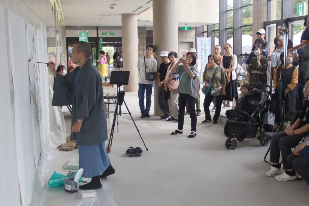 また、当JAの広報大使あまにゃんとの記念撮影や津島市にある牛玉山観音寺の副住職によるライブペイントも開催され、商品を買い求めたりイベントを楽しんだりする来場者で大変賑わいでした。