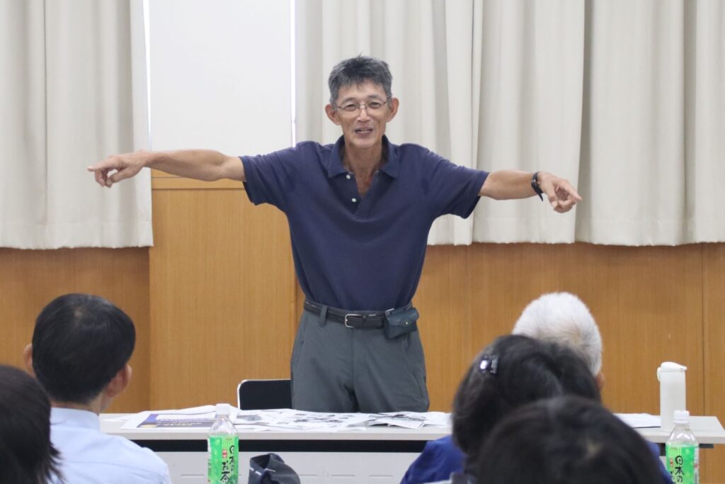 その後、同センターの2階にある学び舎へ移動し、定植したリーフレタスの適応農薬の種類や効果について講義を行いました。参加者は、質疑応答を交えながらアドバイスを受けるなどして、栽培に関する基礎知識を学びましだ。