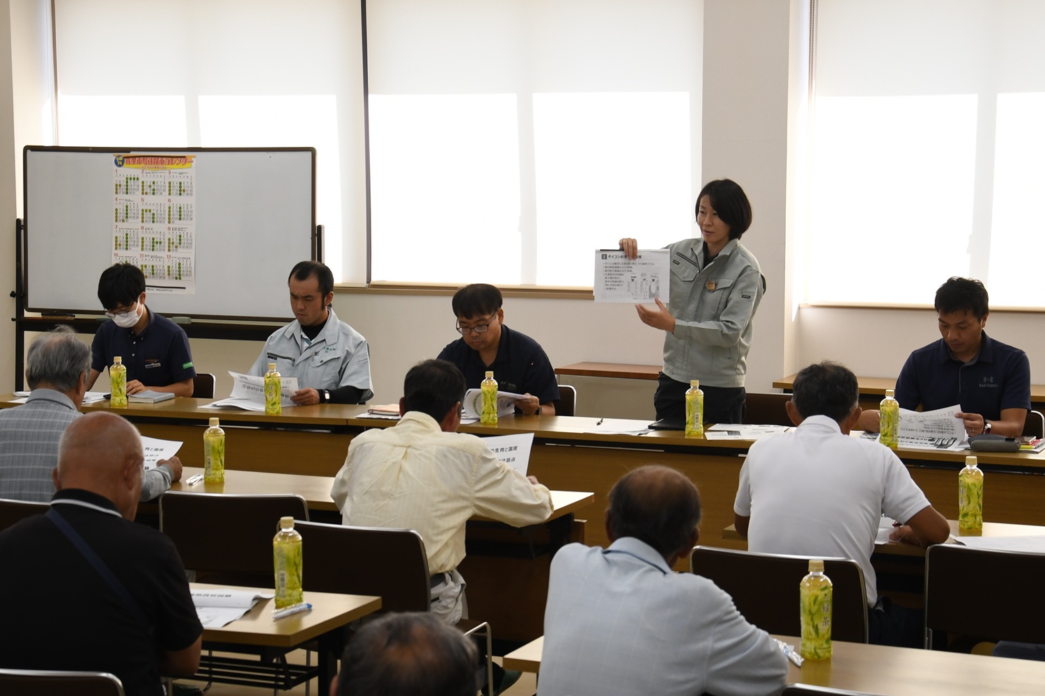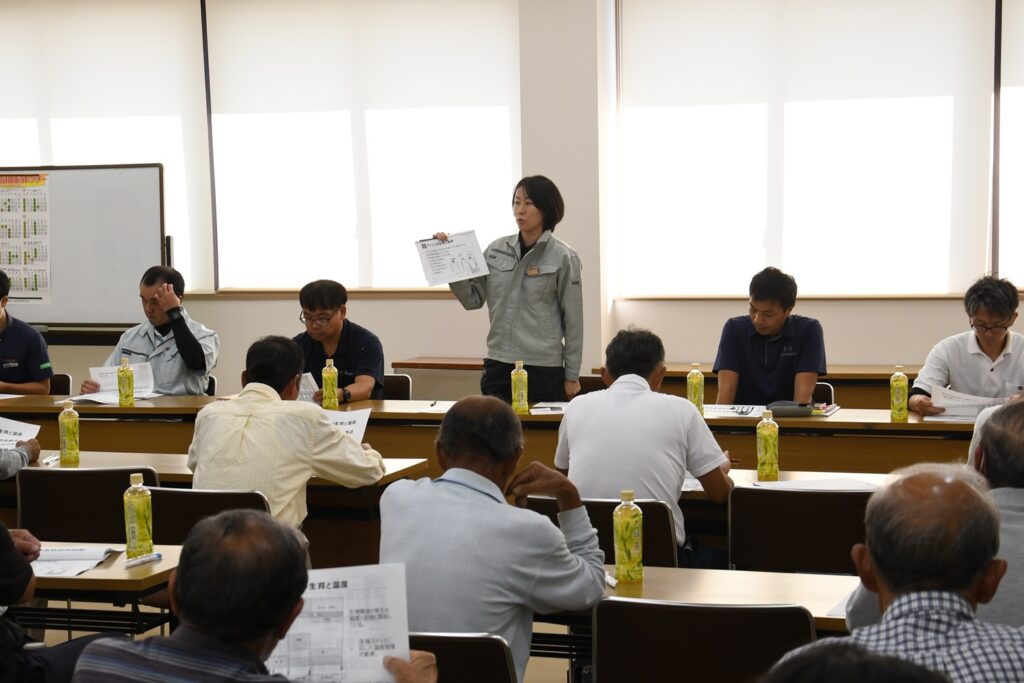 研修会では県農業改良普及課職員からダイコンの生育や温度管理、遮熱資材試験などについて講義を行いました。また、関係者が各品種の特性や肥料・農薬の紹介、高温対策や適正施肥などについて説明しました。