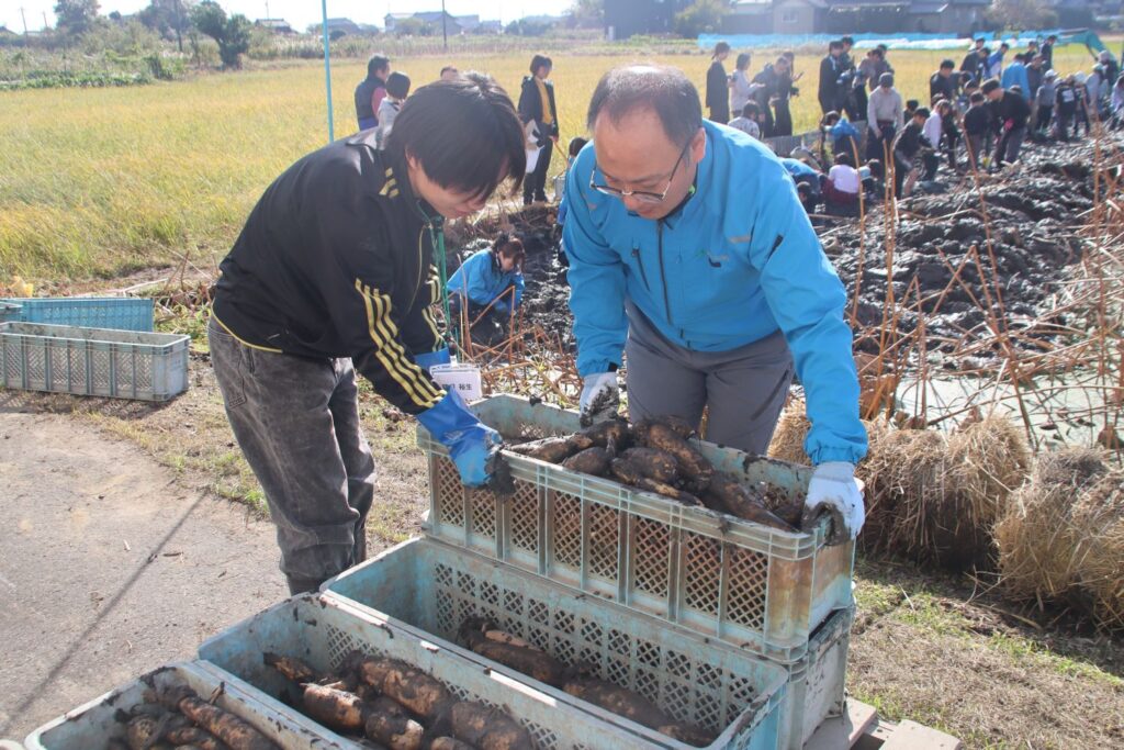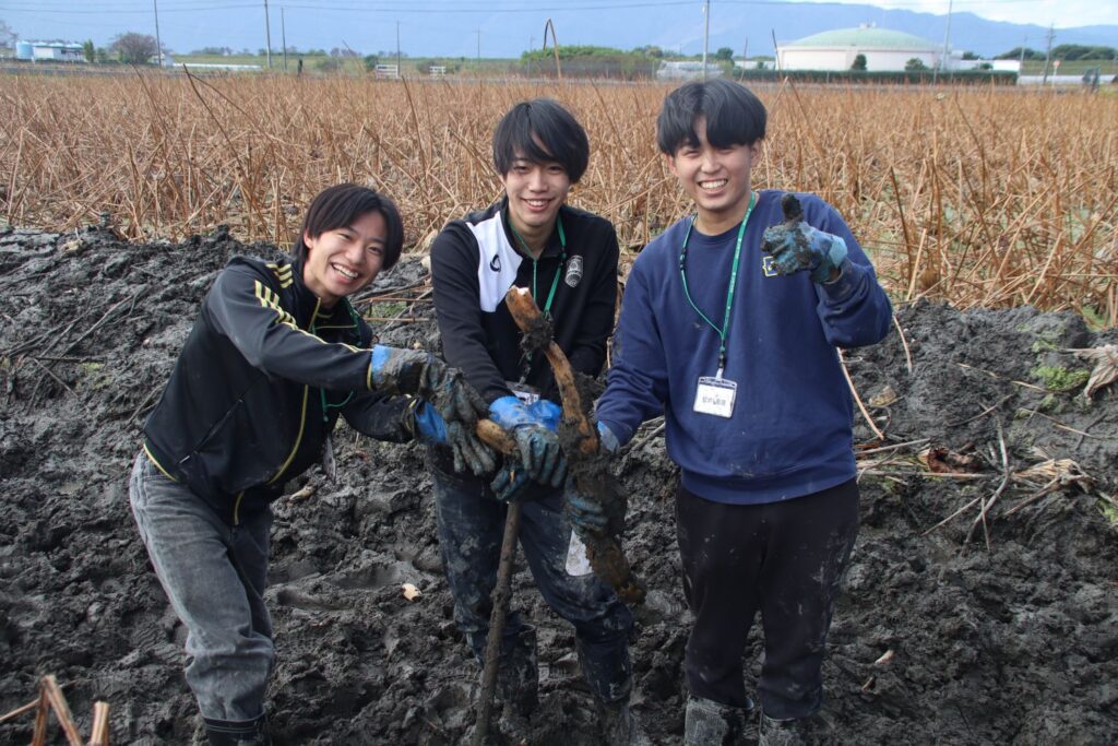 参加した大学生は「実際にレンコンを収穫することで農業の楽しさや大変さを実感できました。自分の手で収穫したレンコンを調理して味わうのが楽しみです」と話しました。