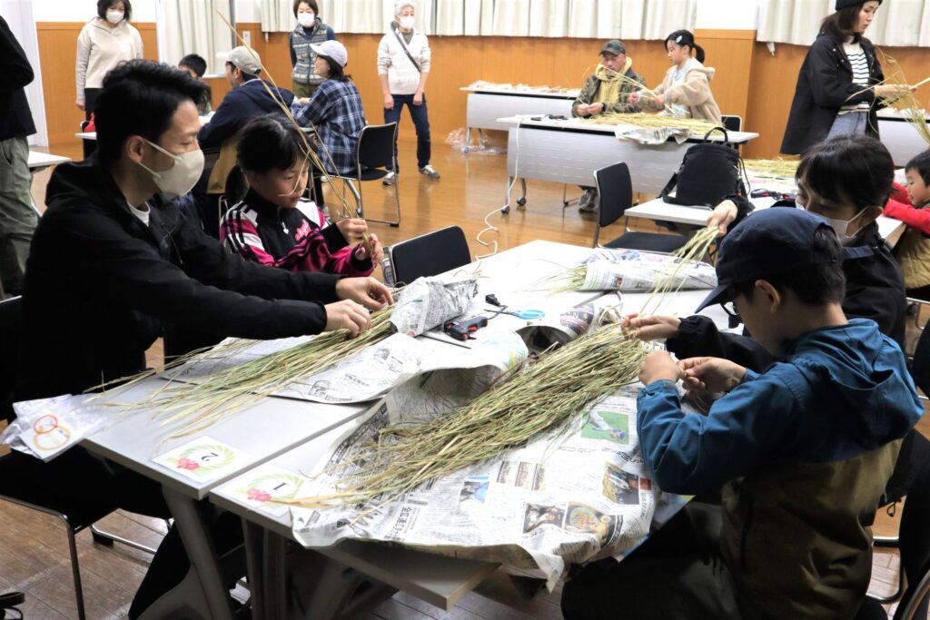 当日は同部の「米こめ食らぶ」が講師を務め、参加者が自ら育て収穫した後に、自宅で乾燥させた稲わらを使用したしめ縄作りを体験しました。