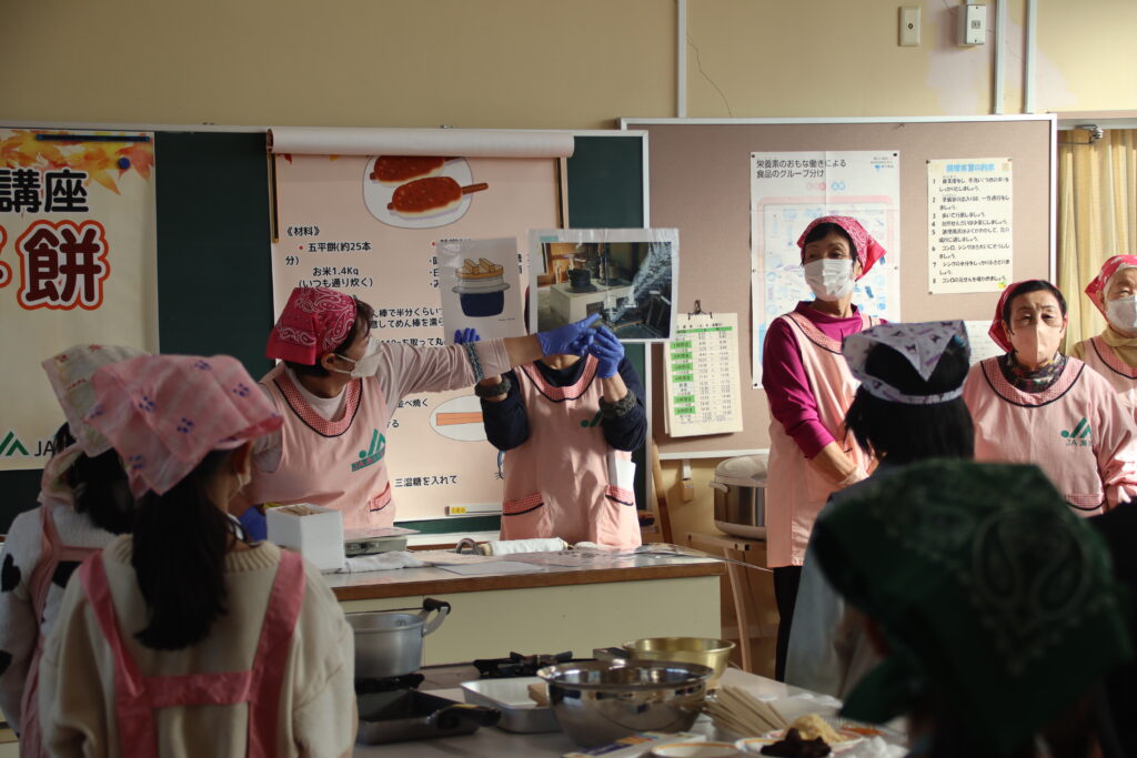 当JAの助け合い組織「たすけあいの会」は11月26日、立田南部小学校と立田北部小学校にて五平餅作り体験の出前講座を開催し、5年生31名が参加しました。