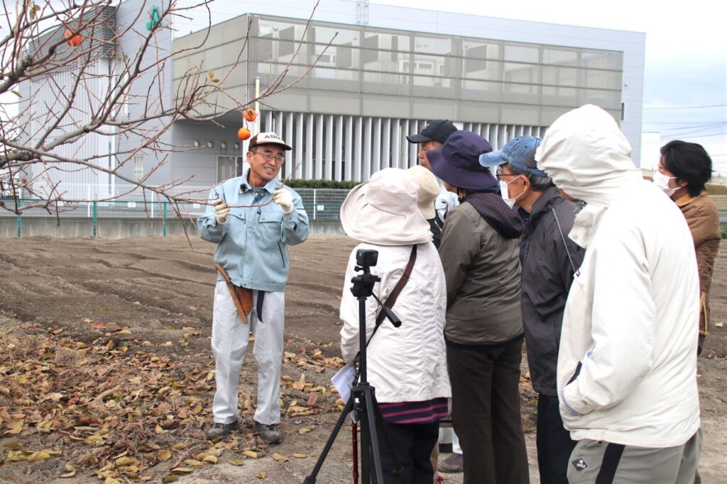 当日はJAあいち経済連の都築壽男さんを講師に招き、実際にカキ・イチジク・ブドウの剪定をしながら、剪定する枝の判断基準などを解説しました。