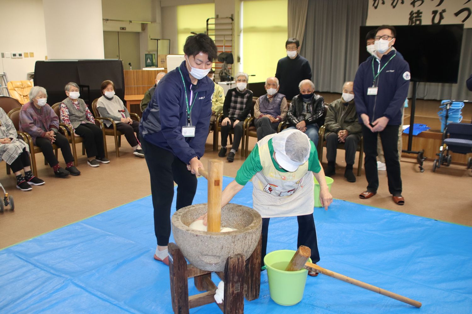 また、餅つきには施設利用者も参加し、掛け声と笑顔に包まれながら年末のイベントを楽しみました。
