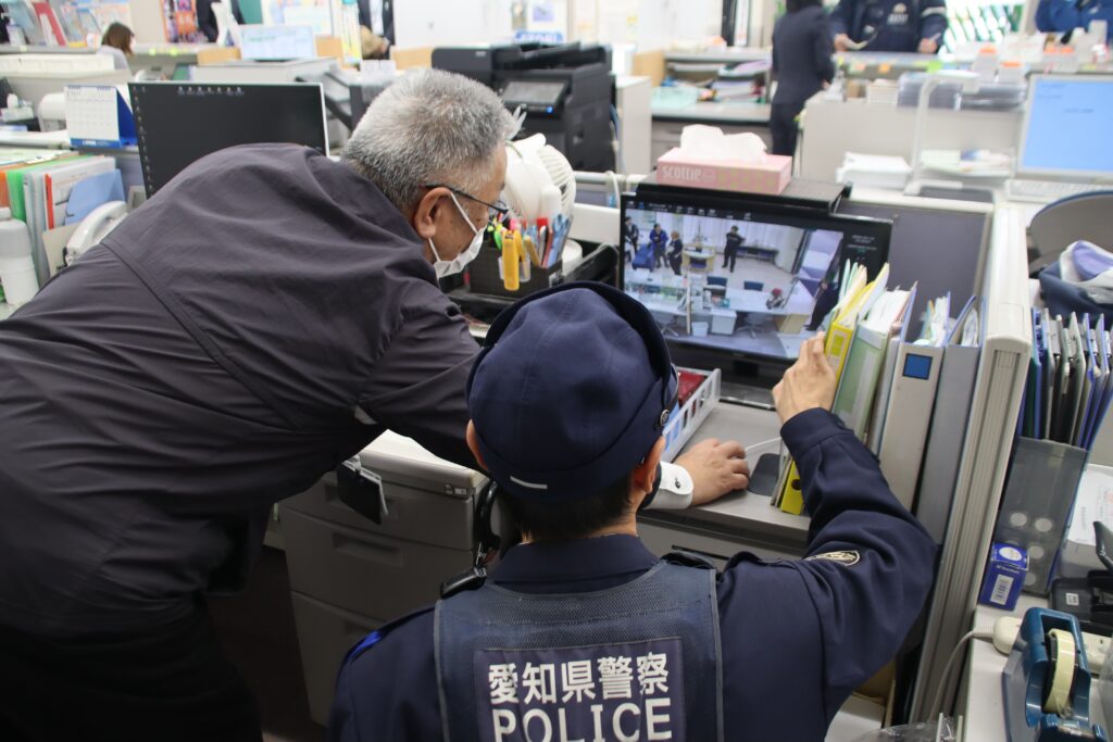 同訓練は、津島警察署員の協力のもと、職員の対応力向上と防犯意識の強化を図る目的で、特殊詐欺未然防止や強盗事件を想定して行いました。