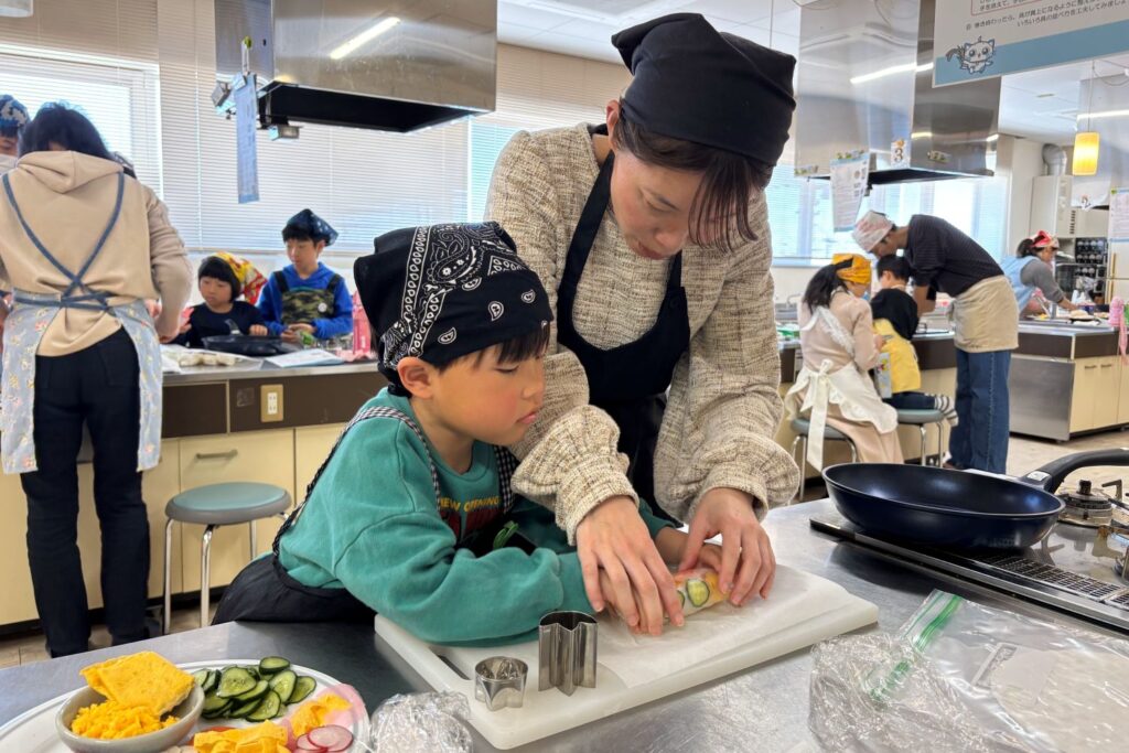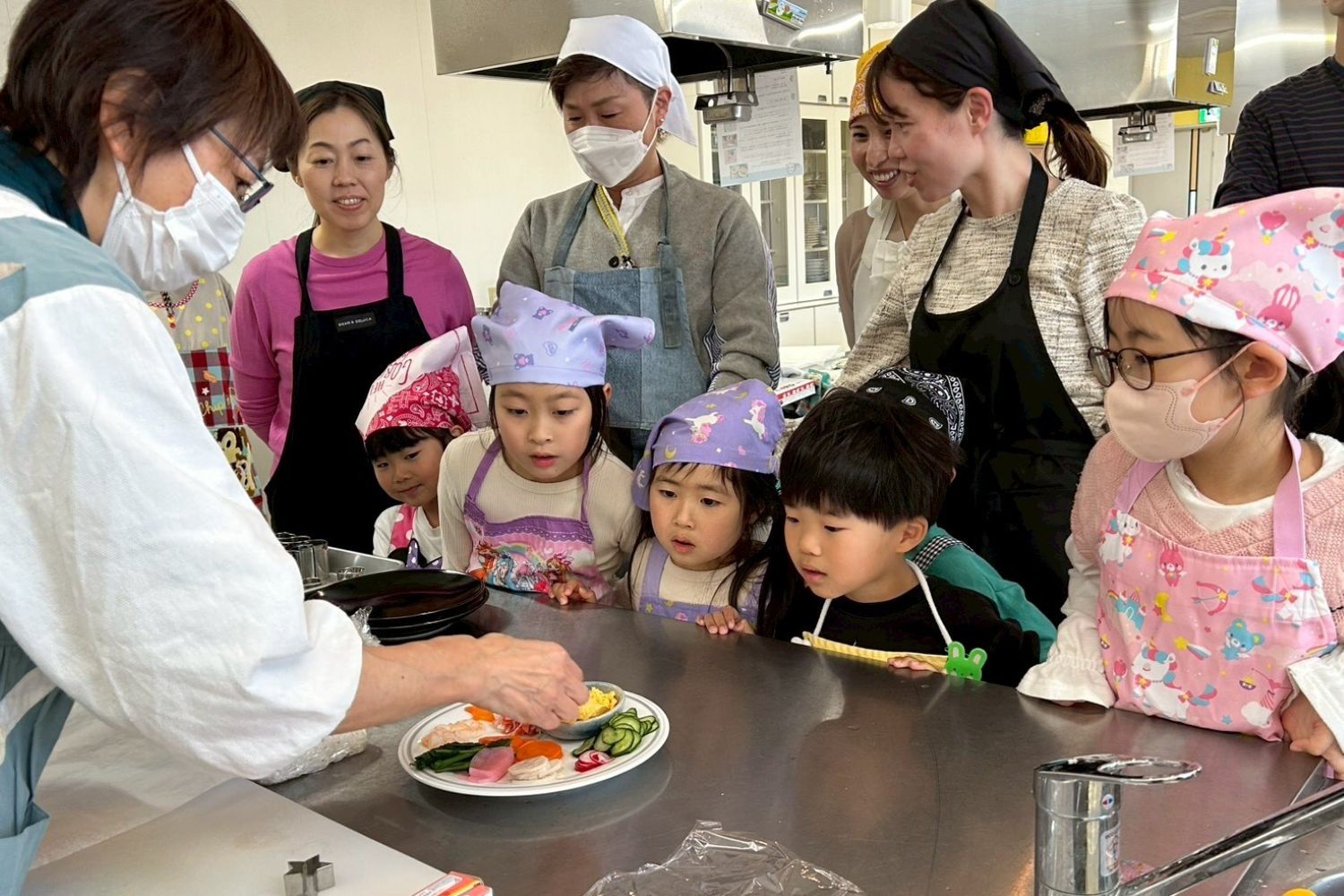 具材が透けて華やかに仕上がり、参加者から歓声があがりました。家族で協力しながら調理した後に、自分たちで作った色とりどりのライスペーパー寿司を笑顔で味わいました。