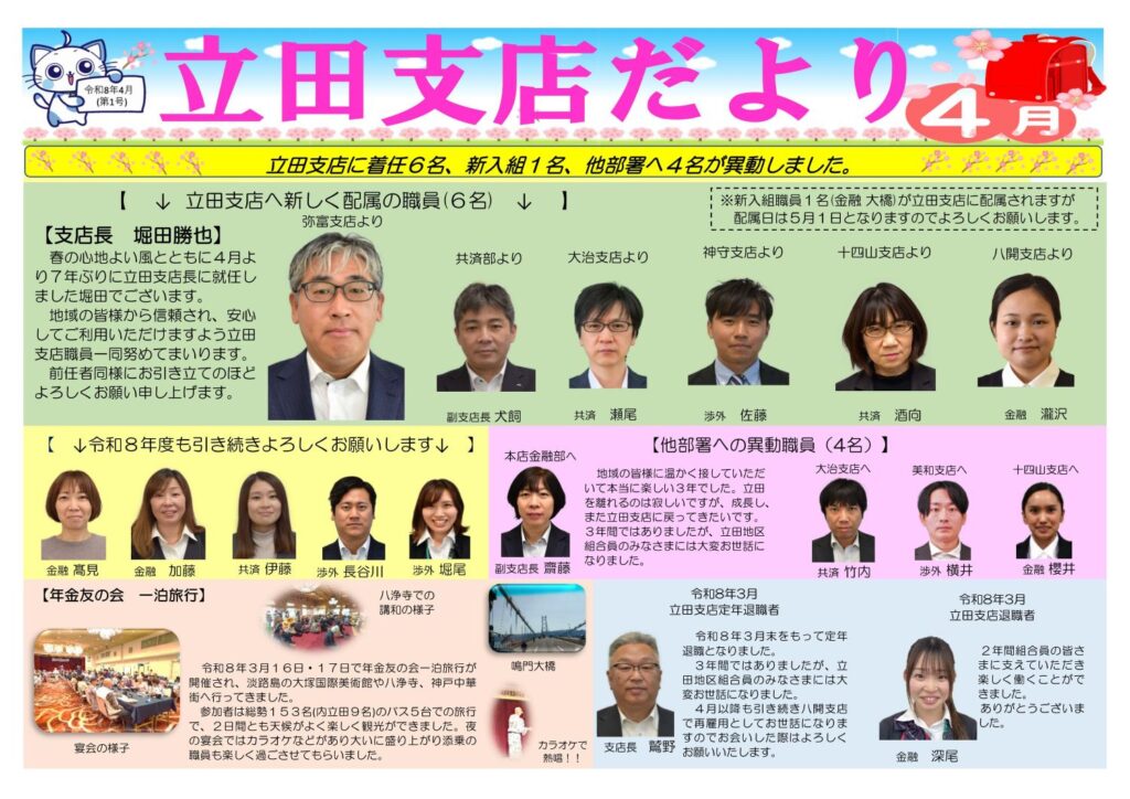 ホーム » 支店だより » 立田支店 » 立田支店だより令和8年4月号