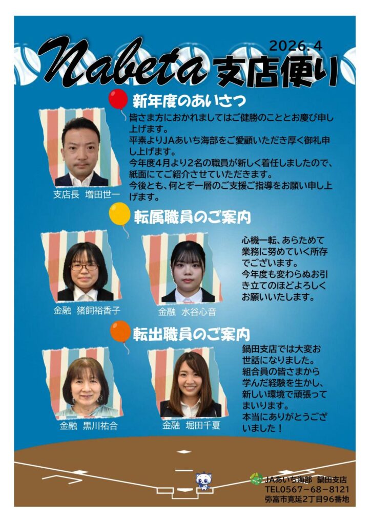 ホーム » 支店だより » 鍋田支店 » 鍋田支店だより令和8年4月号